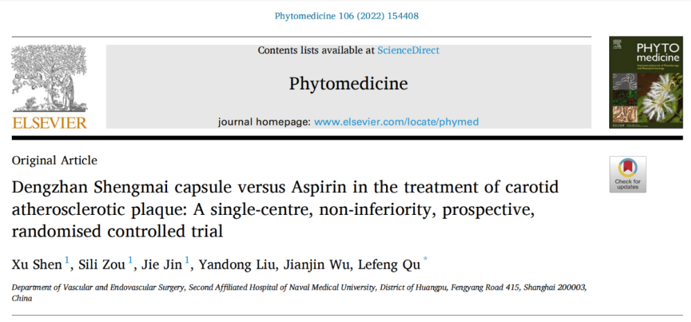 我公司產(chǎn)品燈盞生脈膠囊(以下縮寫為DZSM膠囊)在防治頸動脈粥樣硬化臨床應(yīng)用中已表現(xiàn)出良好的綜合療效,有可能與阿司匹林相似或更有效。為此,海軍軍醫(yī)大學(xué)上海長征醫(yī)院血管外科的曲樂豐教授團隊開展了一項基于早期頸動脈斑塊患者人群的隨機對照研究,主要目的是驗證DZSM膠囊治療頸動脈粥樣硬化斑塊與阿司匹林相比的非劣效性,研究結(jié)果近期已發(fā)表在國際著名期刊《Phytomedicine》上。